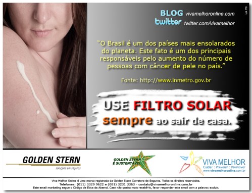 Published janeiro 8, 2011 Campanhas Leave a CommentTags:calor, Cancer, cuidados com a saúde, Filtro Solar, Melanoma, pele, protetor, PROTETOR SOLAR, quente, saúde da pele, sol, verão