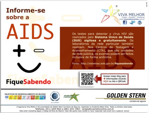 Ainda segundo o governo, das 530 mil pessoas que estão com o vírus HIV no país, 217 mil estão em tratamento e 130 mil ainda não sabem que estão contaminadas, segundo o ministério. “Nossa meta com a campanha é fazer com que pessoas que façam parte desses 130 mil, tomem conhecimento e comecem a se tratar,” disse o ministro.