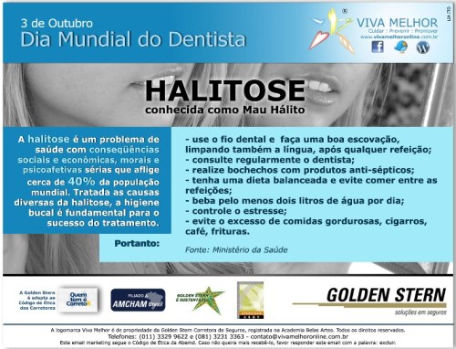 Halitose – Conhecida também como mau hálito, a doença prejudica relações pessoais e de trabalho por conta do mau cheiro vindo da boca do indivíduo. “Cuidados de higiene, especialmente com a língua, ajudam no combate ao problema. O indicado é escovar a língua com a mesma frequência que se escova os dentes.”