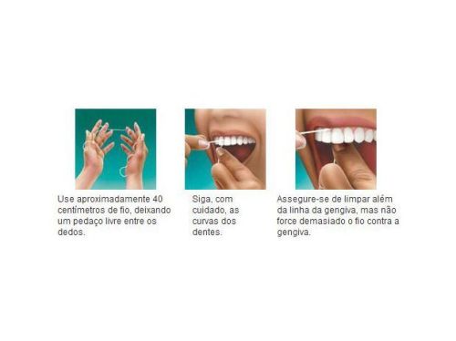 Para remover o fio, use movimentos de trás para frente, retirando-o do meio dos dentes.